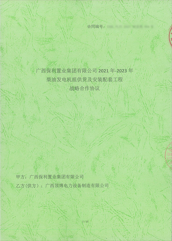 热烈祝贺顶博电力成为保利集团2021年-2023年柴油发电机组供货及安装配套工程战略供应商